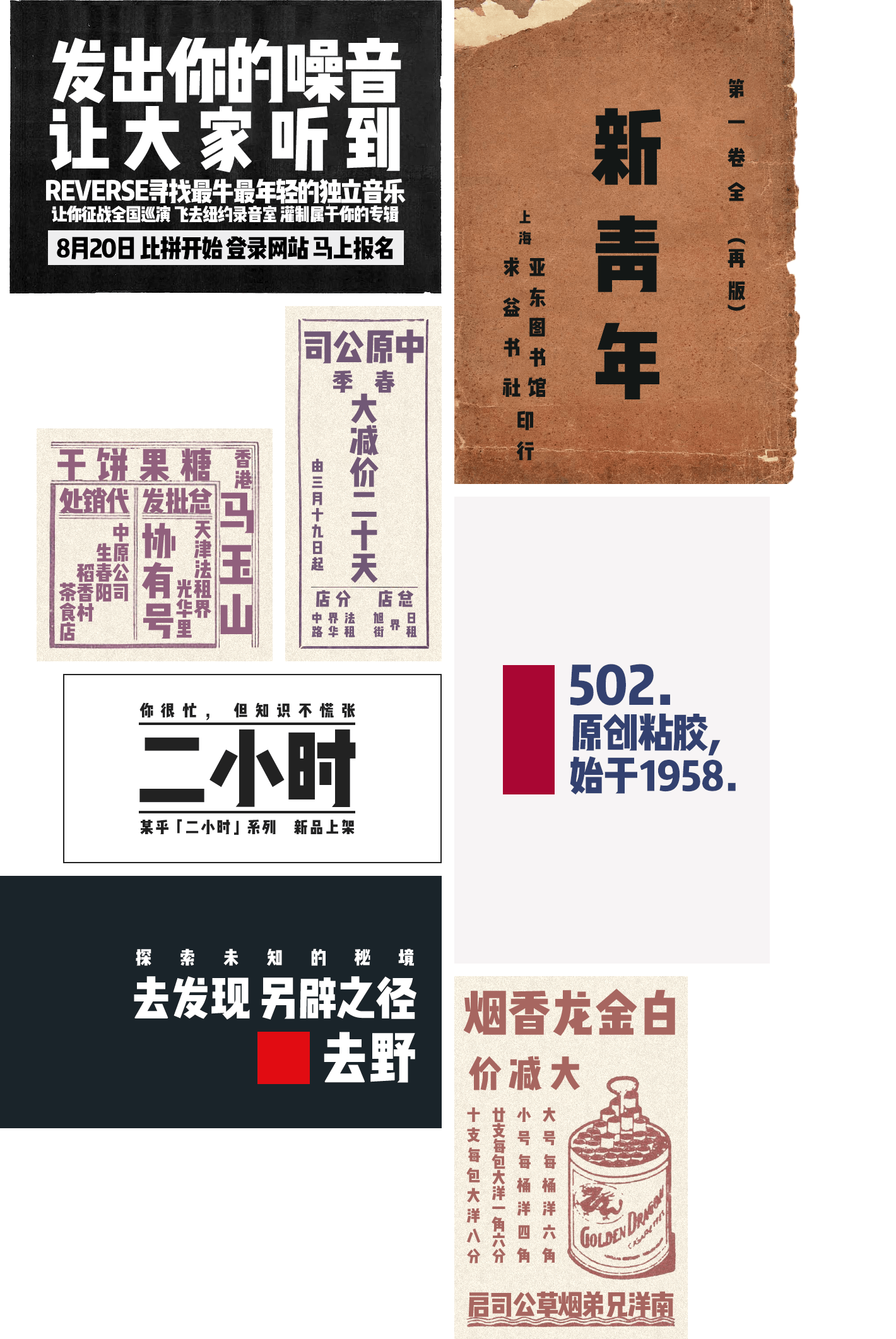 「文悦新青年体」相比市面上的其他美术黑体,有着更加鲜明的视觉形象,能帮助设计者更立体地向受众传达出品牌理念,在满足信息传播功能性的同时,让品牌的调性展露无遗。